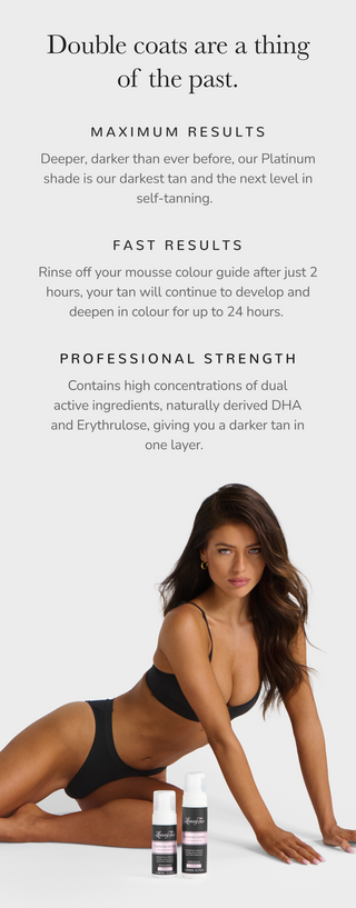 Deeper, darker than ever before, our Platinum shade is our darkest tan and the next level in self-tanning. - Fast results