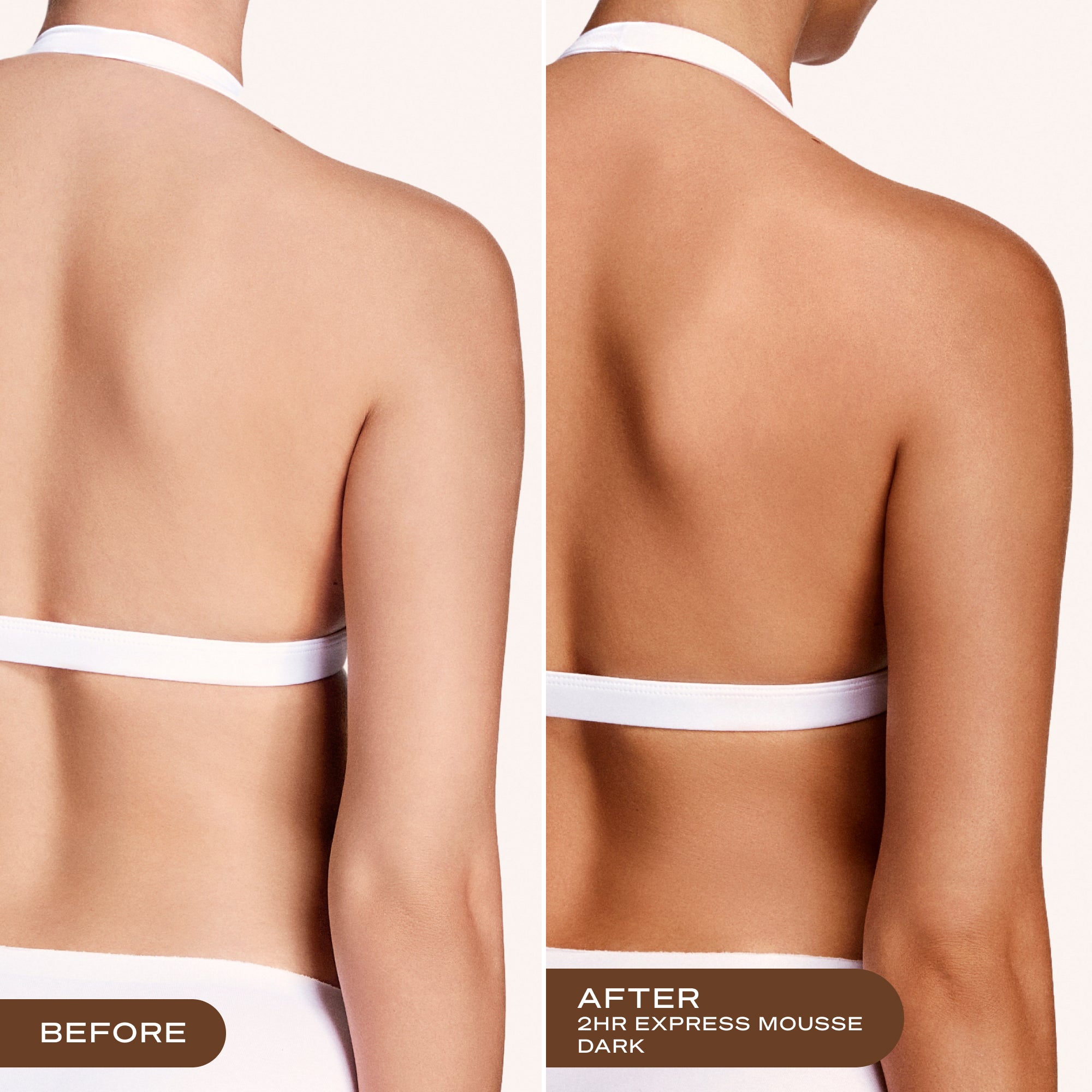 The only difference between the 2 HR Express Self-Tanning Mousse and the 8 HR Deluxe Self-Tanning Mousse is the rinse-off time. The 8 HR Deluxe Self-Tanning Mousse needs to be rinsed off after six to eight hours, while the 2 HR Express Self-Tanning Mousse can be rinsed off in just two hours.